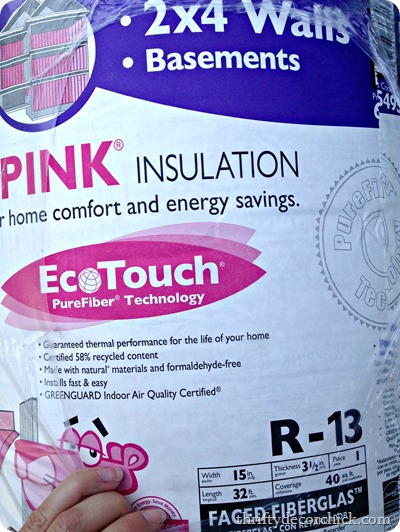 Anyway, I went to my local True Value (check out locations near you here) for the goodies for this project – they were SUPER helpful. I mean, I knew from my shows how to install it, but I was clueless on what kind to pick out. I found out you need to decide on a few things – faced or nonfaced (I went with faced which means it has a paper barrier), you need to know if your studs are 2x4’s or 2x6’s (the 6’s are usually only for a wall with plumbing) and what R-value you want.