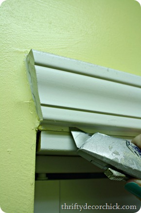 I’m now on a mission to transform this into a more functional space. So I started with some paint and trim removal. Since I was painting I went ahead and removed the trim I had installed along the top – it’s going anyway:
